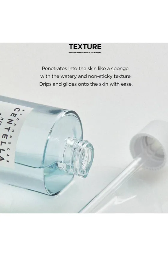 Centella Asiatica Extract(92%), Butylene Glycol, Niacinamide, 1,2-Hexanediol, Water, Hydroxyacetophenone, Carbomer, Glycereth-25 PCA Isostearate, Ethylhexylglycerin, Tromethamine, Sodium Hyaluronate(100.5ppm), Betula Platyphylla Japonica Juice, Melia Azadirachta Leaf Extract, Melia Azadirachta Flower Extract, Propanediol, Musa Sapientum (Banana) Flower Extract, Coccinia Indica Fruit Extract, Rosa Damascena Flower Water, Pyrus Communis (Pear) Fruit Extract, Prunus Domestica Fruit Extract, Aloe Barbadensis Flower Extract, Cucumis Melo (Melon) Fruit Extract, Solanum Melongena (Eggplant) Fruit Extract, Hedera Helix (Ivy) Leaf/Stem Extract, Ocimum Sanctum Leaf Extract, Glycerin, Anastatica Hierochuntica Extract, Corallina Officinalis Extract, Curcuma Longa (Turmeric) Root Extract, Hyaluronic Acid(500ppb), Hydrolyzed Hyaluronic Acid(500ppb), Portulaca Oleracea Extract, Artemisia Princeps Leaf Extract, Rhodiola Rosea Root Extract